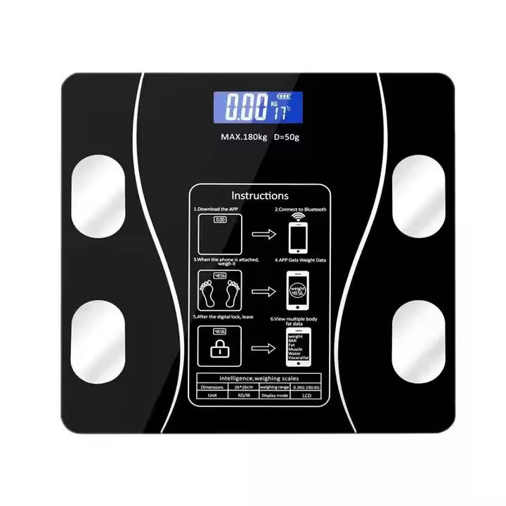Esta báscula inteligente de grasa corporal combina tecnología avanzada y diseño moderno para ofrecerte una lectura confiable de tu peso y composición corporal. Su superficie de vidrio templado y su pantalla LCD permiten una experiencia segura, elegante y fácil de usar.